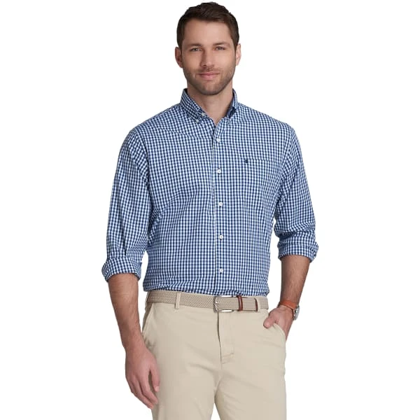 The men’s IZOD button-down shirt features a stylish design and classic fit for a comfortable feel at the office or a night out.